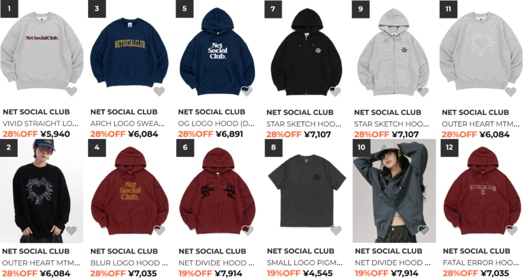 NET SOCIAL CLUBは、韓国で誕生したインディービジュアルライフのためのユニセックスカジュアルブランド。