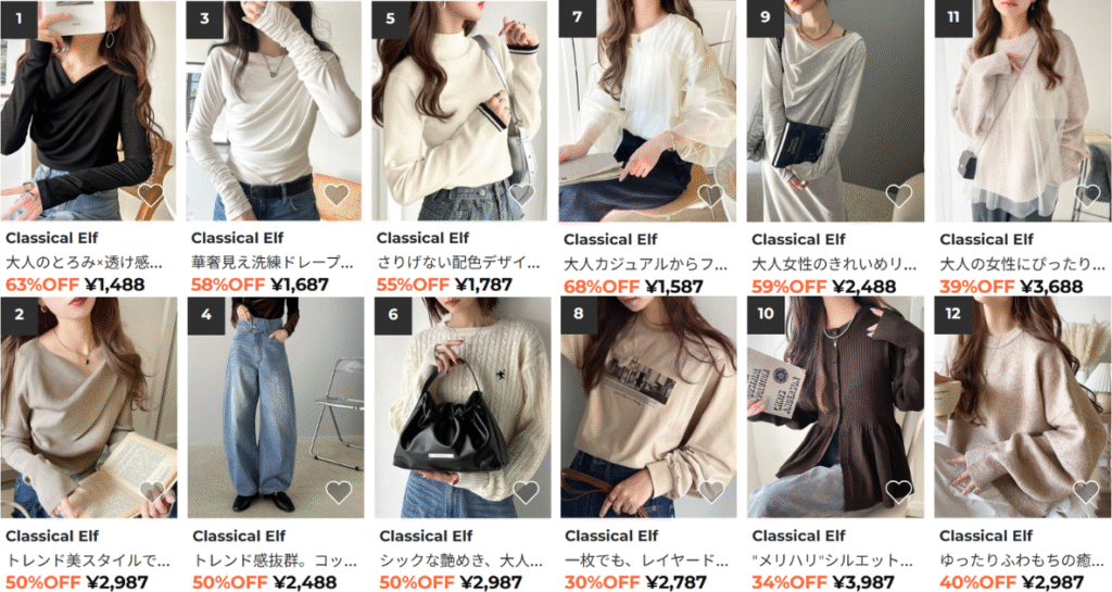 classical elfは、10代から50代までと、幅広い年齢層に愛用されているファッションブランドです。特に10代から30代の女性を中心に人気を誇っています。