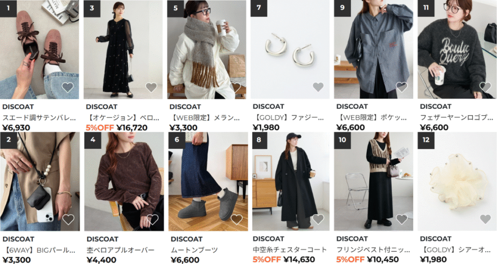 nuguでは韓国ブランドだけでなく、日本の人気ブランドも取り扱っていることが分かったと思います。