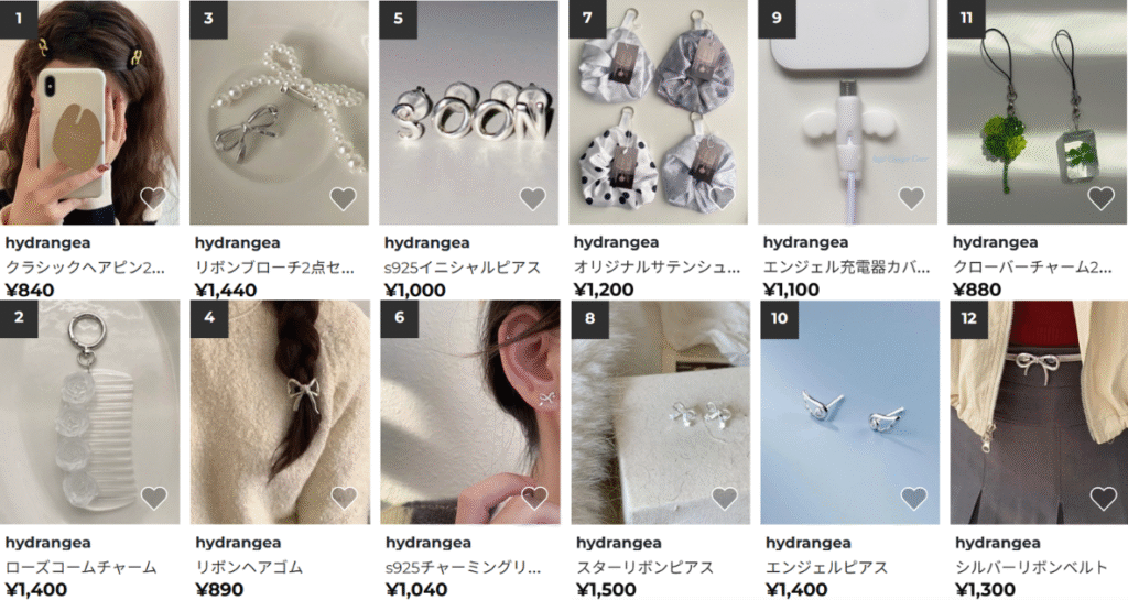 主にアクセサリーやiPhoneケースなどの小物を扱っている。