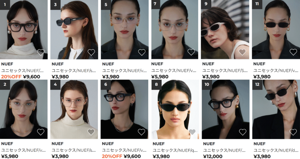 NUEFは、主に アイウェア(サングラス・メガネ)を扱っているブランド。