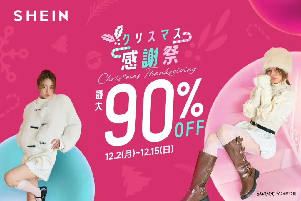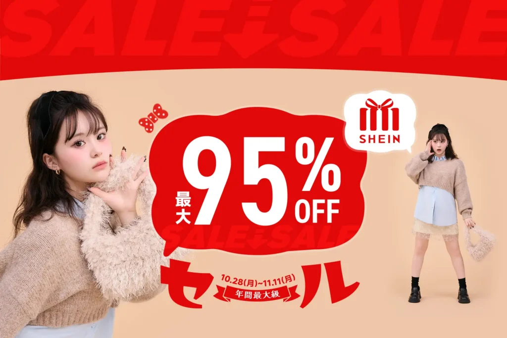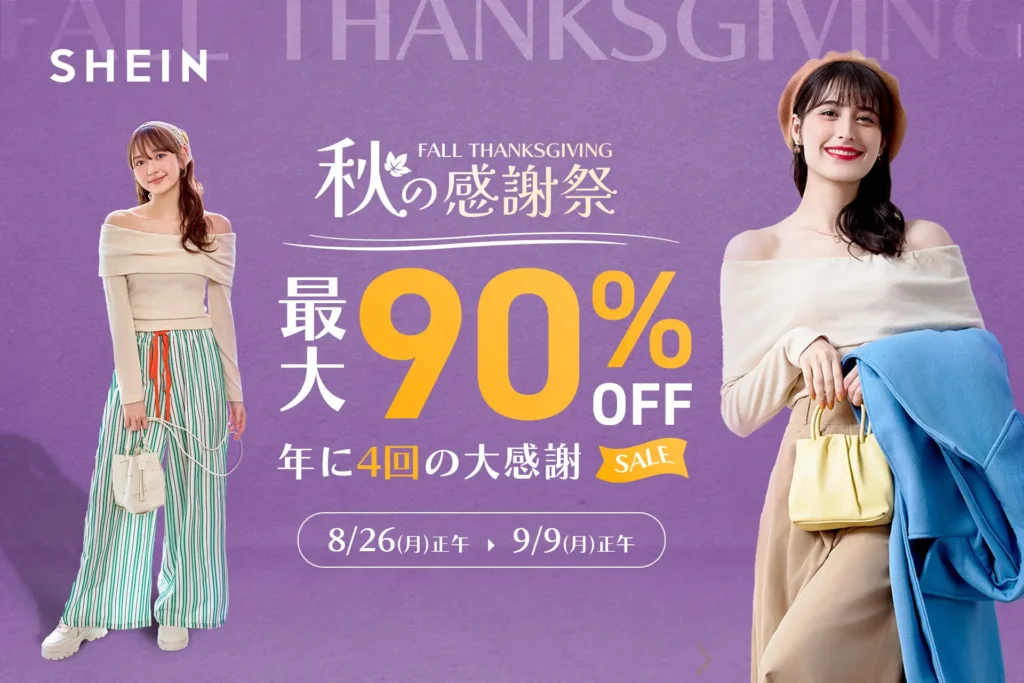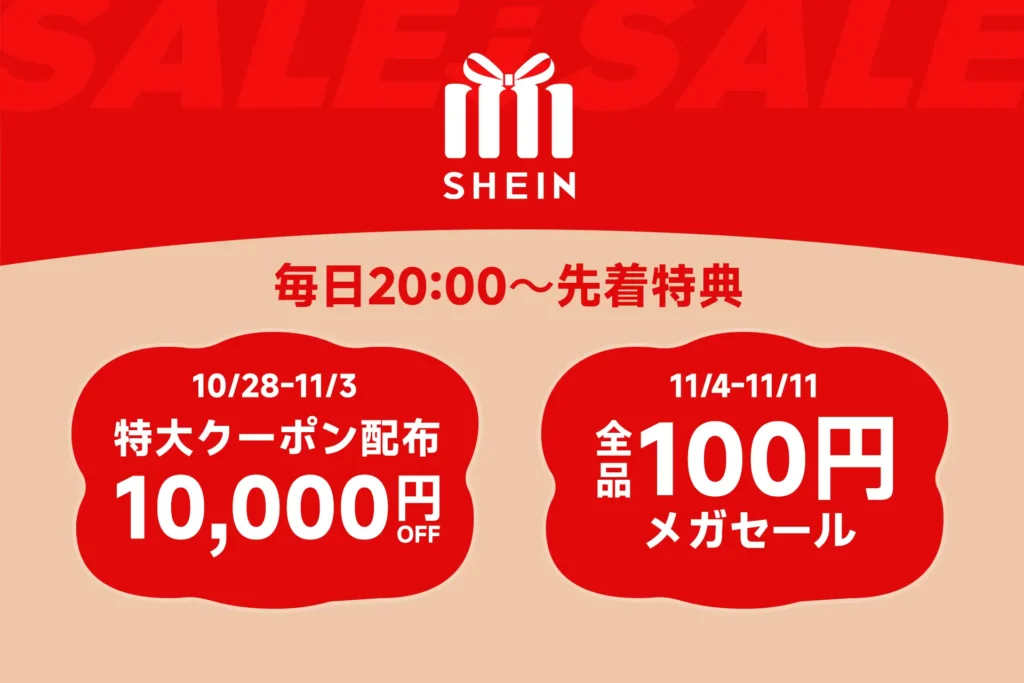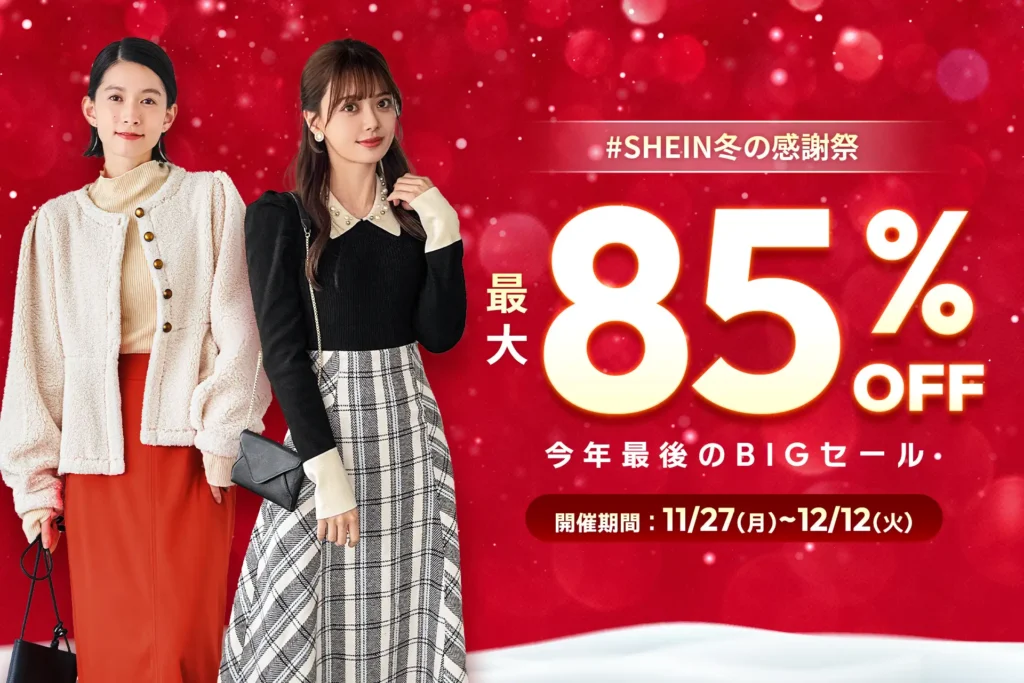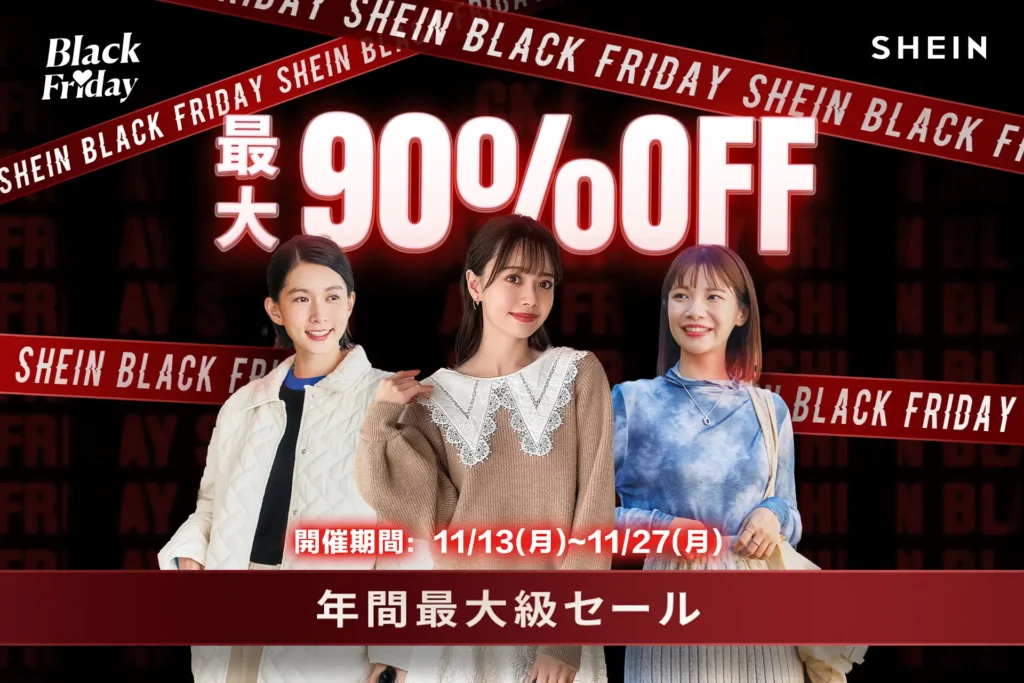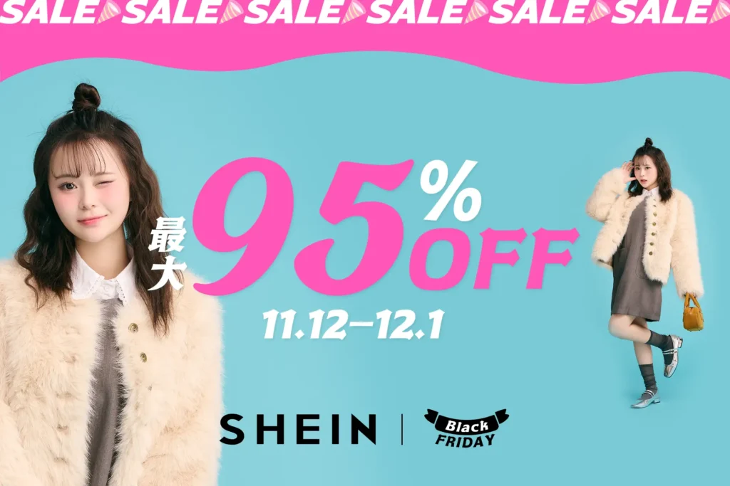 SHEINでは、毎年 周年記念セール(9〜10月)11.11(いい買い物の日)セール(10〜11月)ブラックフライデー(11月後半〜12月)感謝祭(夏・秋・冬)、そしてクリスマス感謝祭(12月) といった大型イベントが開催されてきました。