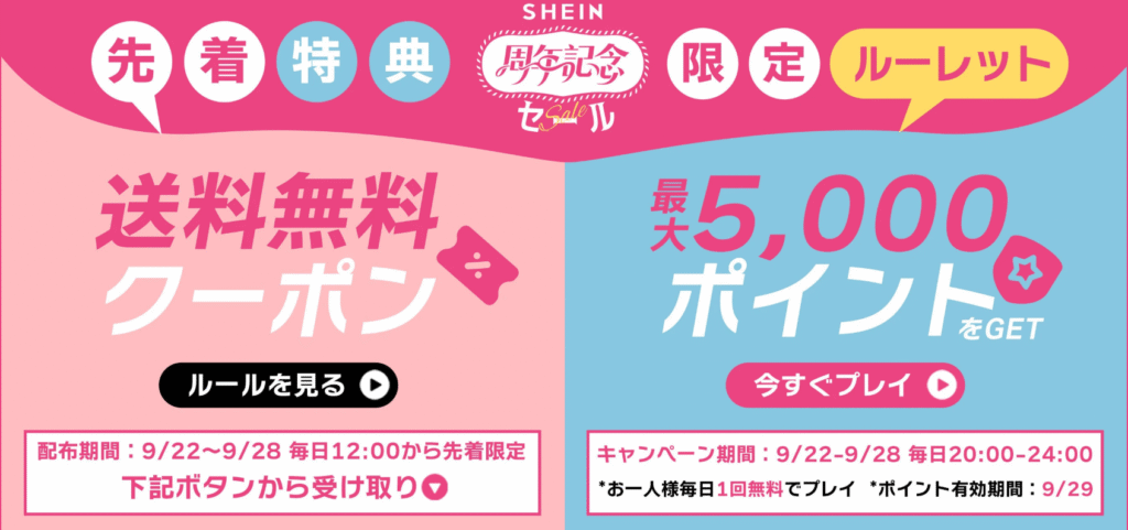 SHEINでは現在、年に一度の「周年記念セール」を実施しています。